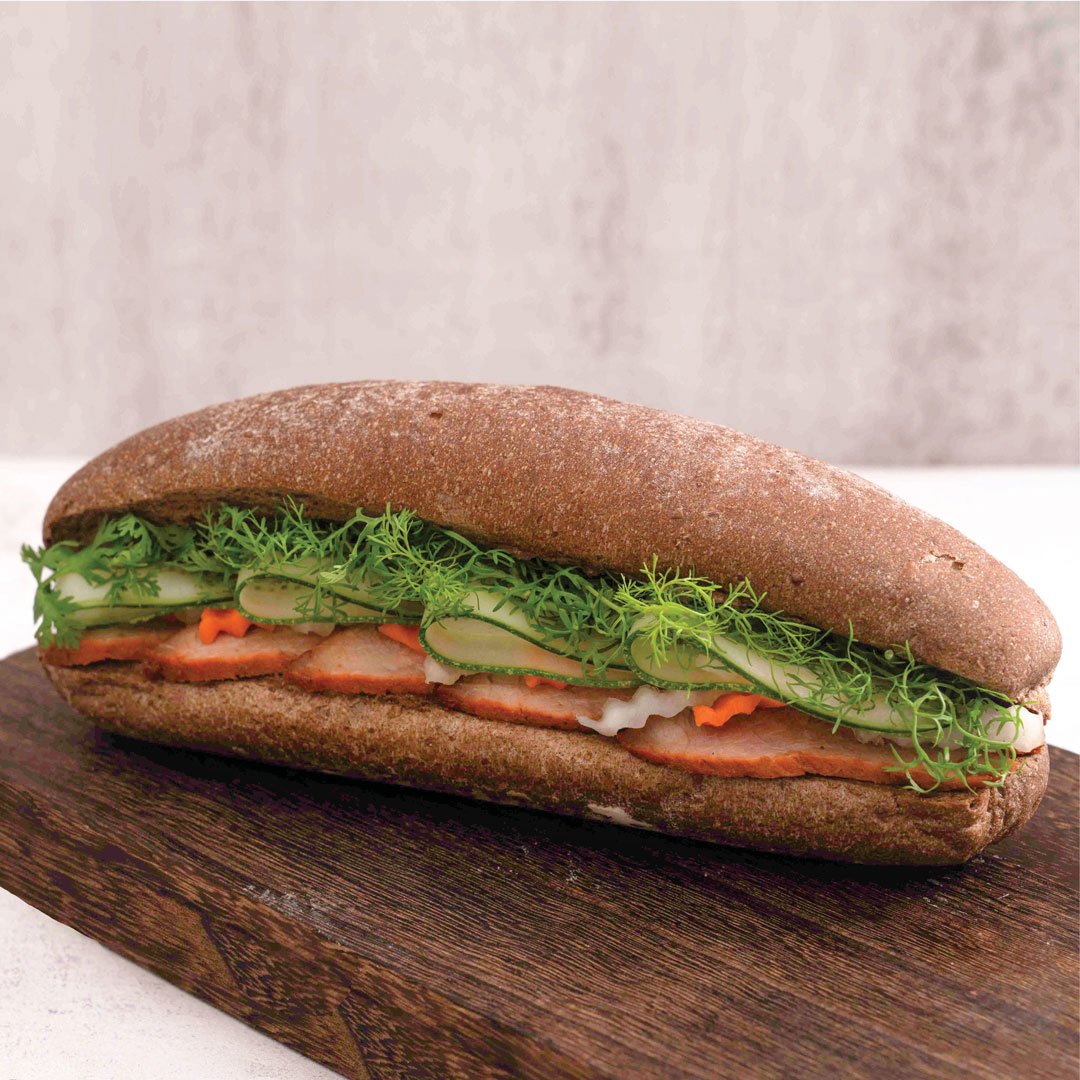 It is often split lengthwise and filled with savory ingredients like a submarine sandwich and served as a meal bánh mì. Khi quay thịt, bạn có thể chọn dầu ăn hoặc mỡ lợn để quay nhưng ngon nhất vẫn là mỡ lợn.